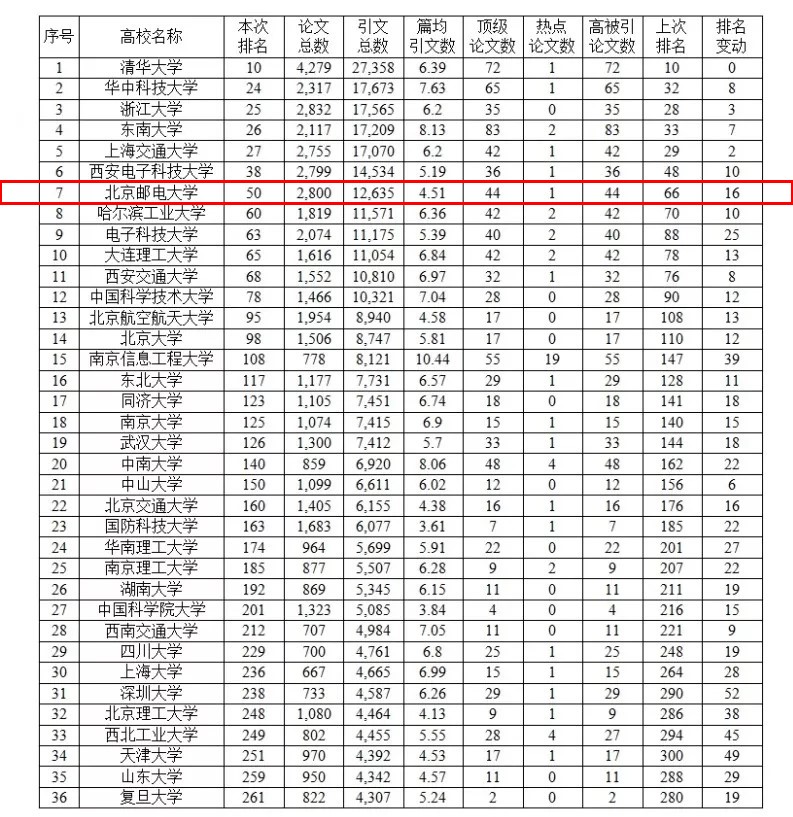 根据科睿唯安(原汤森路透)2018年5月11日发布的最新ESI数据,本次上榜机构总数为5578,中国高校(内地)上榜高校数为231。计算机科学排名中北邮位列国内第七,全球第五十,较上次排名上升十六位,保持在全球最强前1%。