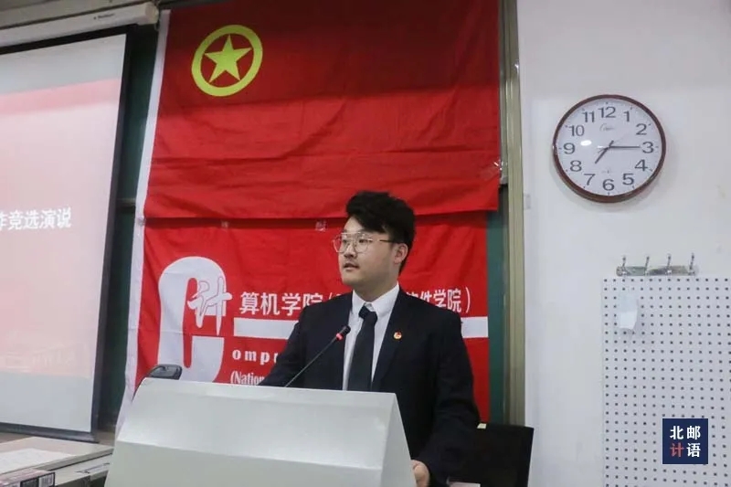 紧接着,由董绍辉副书记及王璐老师为学校优秀团干部获奖者颁发荣誉证书。颁发结束后,新一届学生组织主要负责人候选人做出了竞选演说,本次共竞选四个职位——团委副书记(学生兼职)、北邮计语新媒体中心副主任、蓝图创新协会理事会成员、星火志愿者协会主席团成员。在有限的时间里,同学们对自己的工作做出了总结、对部门未来做出了规划,并由参会嘉宾进行评分。