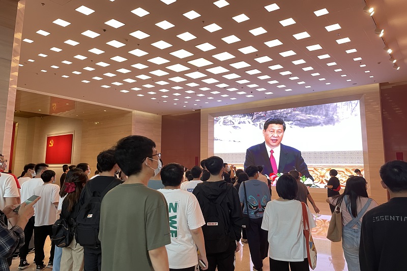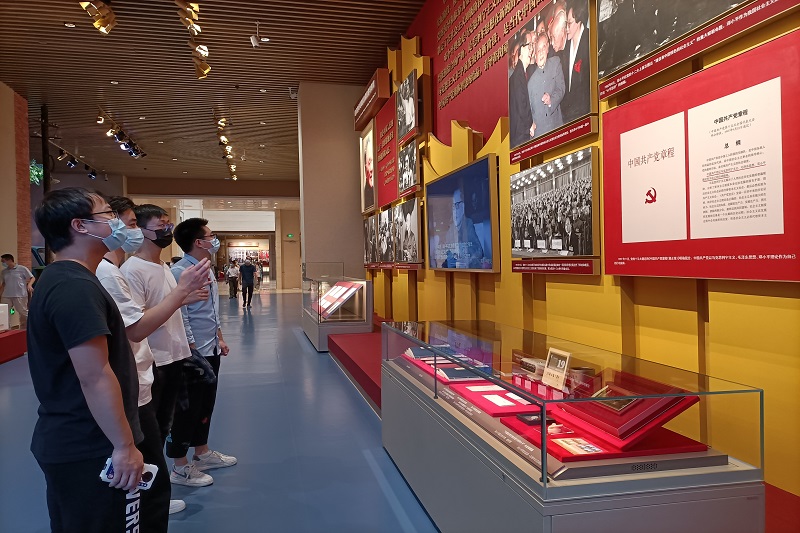 中国共产党历史展览馆是由习近平总书记亲自谋划、亲切关怀、亲自决策、亲自部署建设的永久性、综合性的党史展览馆。展馆全方位、全过程、全景式、史诗般展示了党矢志不渝奋斗之路。在讲解员的带领下,沿着“站起来、富起来、强起来”的历史脉络,同学们参观了“建立中国共产党,夺取新民主主义革命伟大胜利”“成立中华人民共和国,进行社会主义革命和建设”“实行改革开放,开创和发展中国特色社会主义”“推进中国特色社会主义进入新时代,全面建成小康社会,开启全面建设社会主义现代化国家新征程”4个部分的内容。同学们真切直观地感受到了红色政权来之不易、新中国来之不易、中国特色社会主义来之不易。也更加认识领会到了中国共产党为什么能,马克思主义为什么行,中国特色社会主义为什么好!